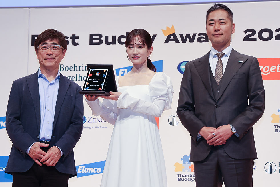 公益社団法人日本獣医師会が創設した「ベストバディアワード」は、「動物との暮らし」の価値や魅力を社会に広く発信し、その普及に大きく貢献した人物を表彰するもの。記念すべき第1回では、動物との暮らしの魅力を自然体で伝え、多くの共感を集めてきた前田敦子さんが初代受賞者に選ばれた。